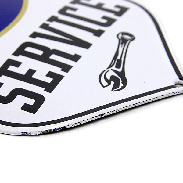 We have been introducing enameled plates that are quite large in size. This one, however, is about 9 cm wide and 15 cm tall, and is just the right size for display. The word "SERVICE" and a wrench are drawn on it along with the Alfa emblem.