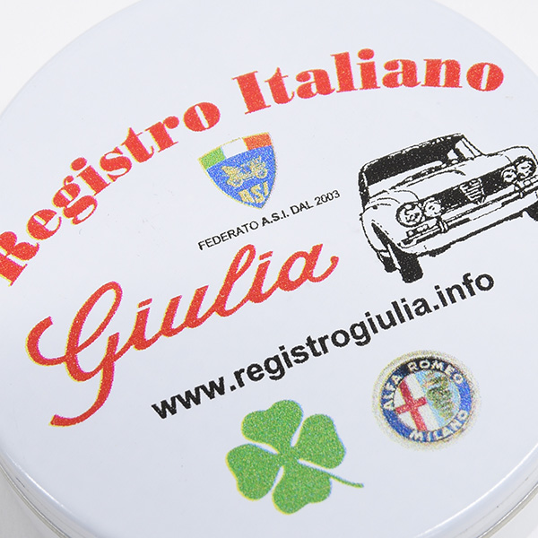 そんなGIULIAを愛するメンバーによって構成されるのが、イタリアはヴェローナに本拠を構えるRegistro Italiano GIULIAです。イタリアにおけるヴィンテージカーの統括団でもあるASIにも登録された由緒あるクラブです。こちらはそのクラブがメンバーに向けに製作したクラブアイテム、小さな缶に入ったキャンディです。