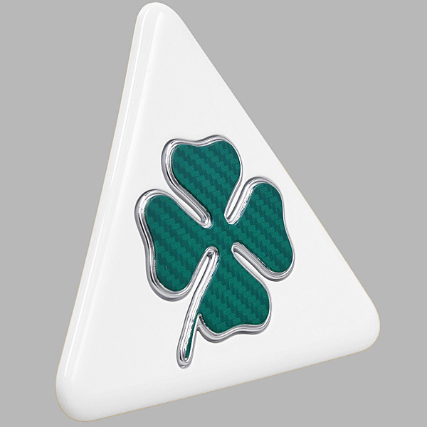 This is the definitive version of the Quadrifoglio, a grade of the Alfa Romeo GIULIETTA, and this emblem shines brightly on the fender. Molded in resin, this emblem has an elaborate structure with a white base and chrome clovers embedded in it.