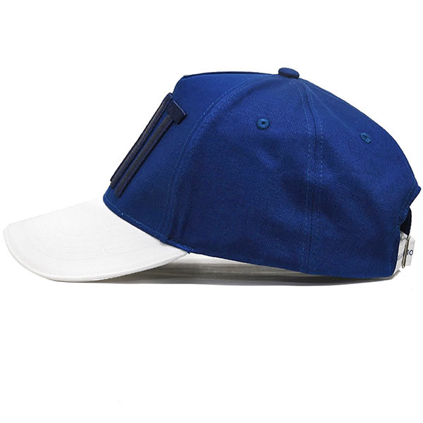 FIAT純正レタードベースボールキャップです。バイザー部分のホワイトと、本体部分のブルーがFIATらしいシンプルな色合い。キャップ正面には濃紺のFIATロゴが立体的な刺繍で再現されています。
