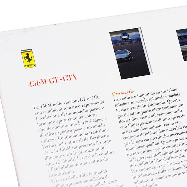 1998年のFerrariといえば、F355シリーズのファイナルシーズンとも言える年。そしてフラッグシップ550maranelloとともにV12ラインを彩った456シリーズが、456MGT/GTAへと進化を遂げた年です。本プレスキットにもその進化した姿ががしっかりと収録されています。