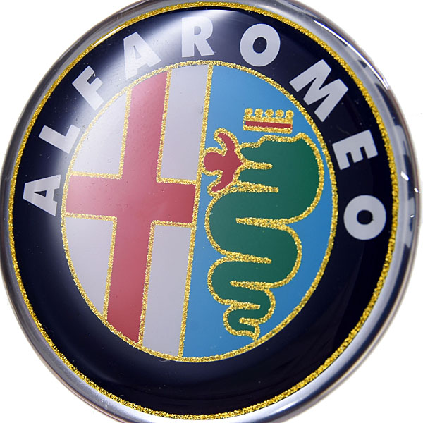 おなじみAlfa Romeoエンブレムをモチーフにしたj純正ステッカー、直径45mmタイプです。表面に樹脂コーティングが施された3Dタイプステッカーです。