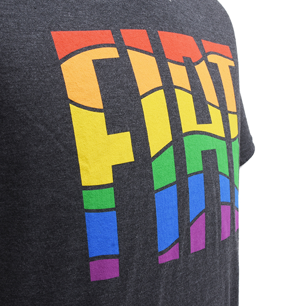 FIAT custom graphic printed in rainbow colors on front center chest