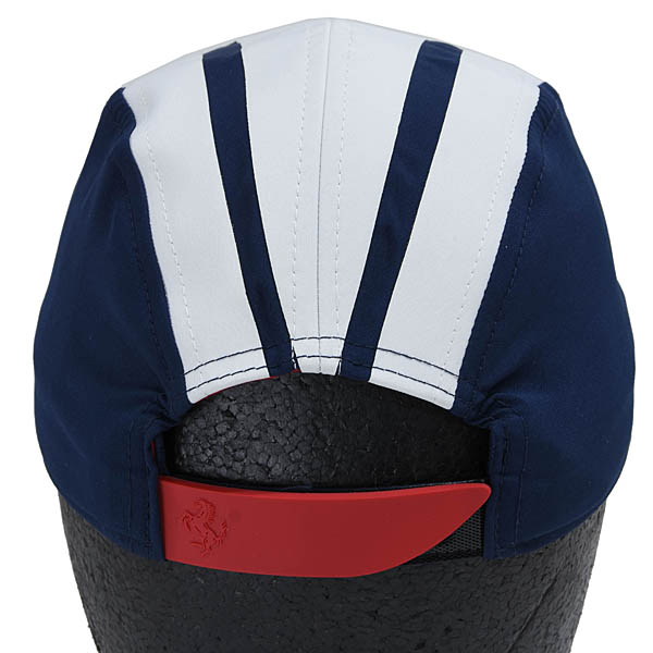 The navy base has three white lines in the center, resembling the color scheme of the 488 Pista Spider. Cavallino is embroidered in red on the front.