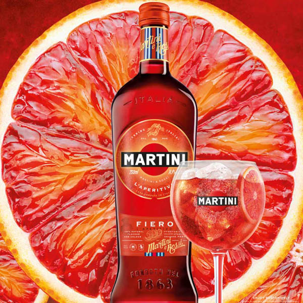柑橘類とほろ苦いオレンジをすっきりとした白ワインとブレンドしたMARTINI FIERO。