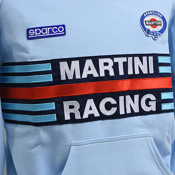 This is a collaboration item between these two names that have continued to color and support the racing scene. This is a hooded FERPA. The pastel-colored light blue base with MARTINI and Sparco patches on the chest and arms. The bold MARTINI RACING logo and lines are reproduced in embroidery. The bold and racy finish, only possible by sparco, which also handles racing suits, gives the illusion that this is a model worn by a works driver.
