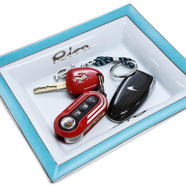 そしてボート本体のみならず、その上質なイメージをモチーフにしたオフィシャルアイテムもまた魅力あふれるラインナップを誇ります。その中からこちらは、コイントレイです。ホワイトをベースに、上部にはRivaを象徴するエメラルドグリーンが帯状にデザインされ、クロームのRivaロゴが輝いています。Rivaらしいネイビーの缶に収納されています。